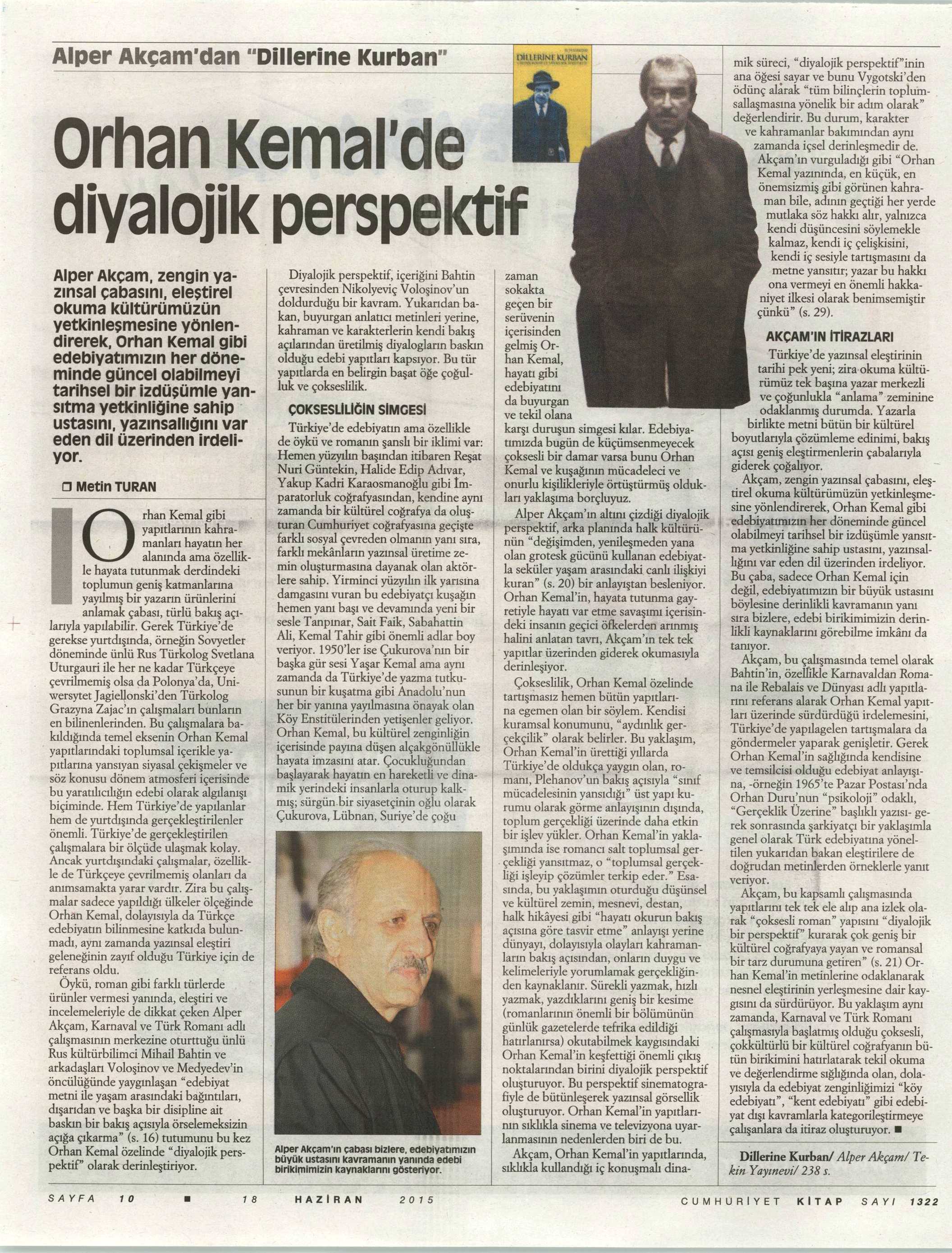 DİLLERİNE KURBAN / ORHAN KEMALDE DİYALOJİK PERSPEKTİF